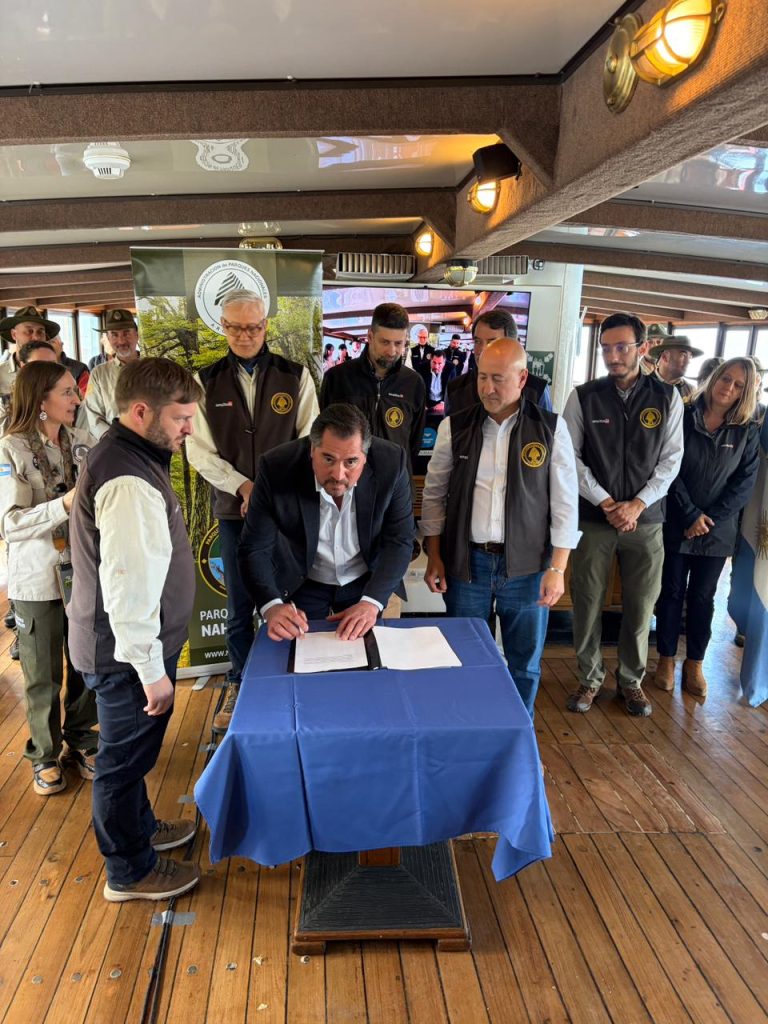 Asimismo, durante la ceremonia se formalizó la firma de un convenio de cooperación entre la APN y la Municipalidad de Villa La Angostura, destinada a fortalecer acciones conjuntas en materia de conservación, turismo e información.