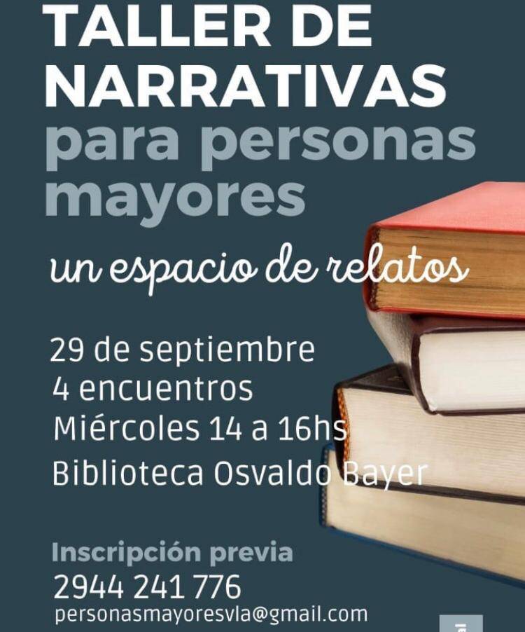 El Área municipal de Personas Mayores de Villa La Angostura invita a participar de un nuevo taller de narrativas, que se dictará en la Biblioteca Osvaldo Bayer a partir del 29 de septiembre.