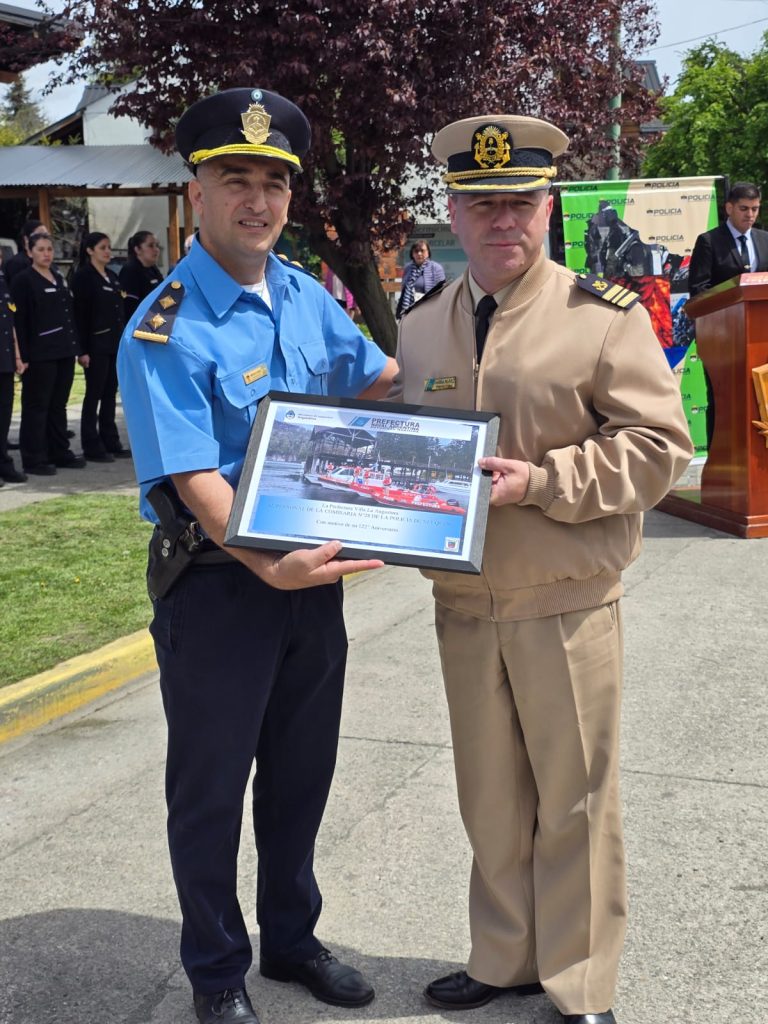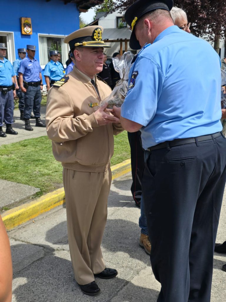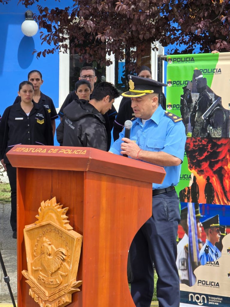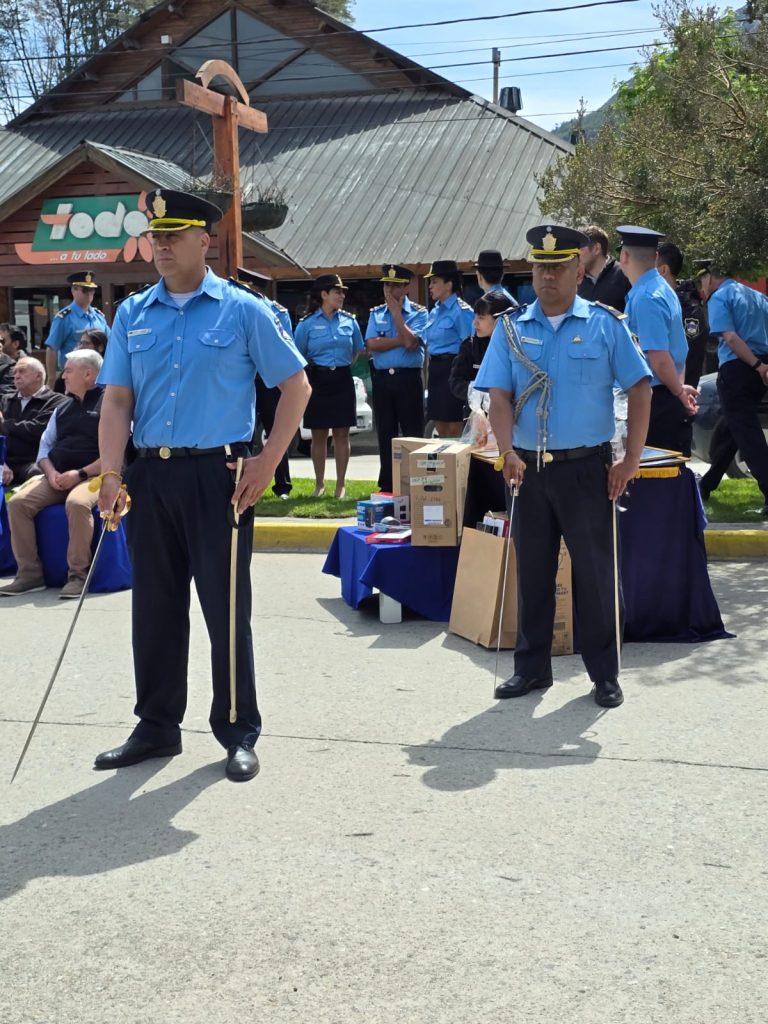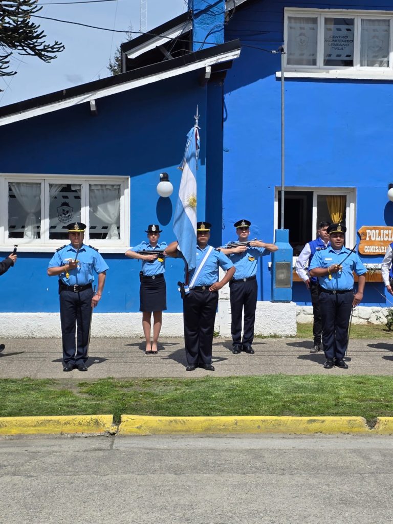 Esta mañana se llevó a cabo el acto en conmemoración del 122° Aniversario de la Comisaría N°28 de Villa La Angostura, en la Avenida Arrayanes, frente a la histórica dependencia policial.