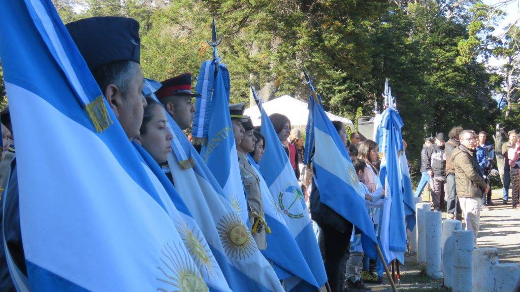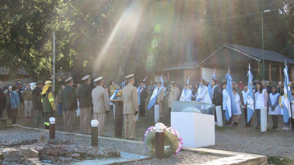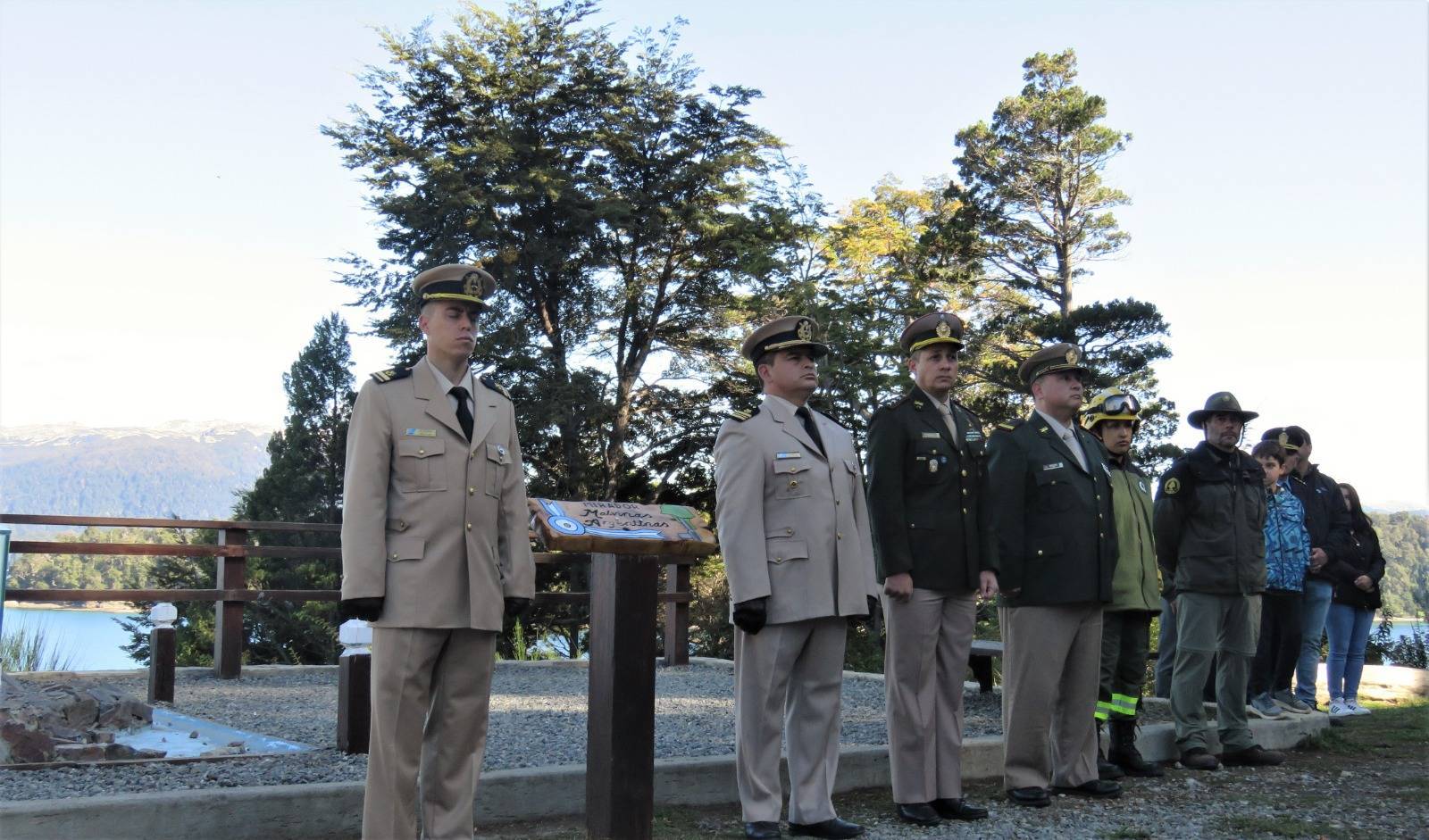 Uno de los momentos de mayor emoción, se dio cuando al entonar la canción Aurora y los respectivos Himnos Nacional y Provincial se pudo observar a espaldas del monumento y sobre las aguas del Nahuel Huapí un grupo de diez embarcaciones con sus respectivas banderas Argentinas que trazaron rumbo a este monumento formando un desfile, acompañaron y brindaron un sentido homenaje a los veteranos, caídos y familiares entonando las estrofas de los himnos y al grito de “VIVA LA PATRIA”. Sin lugar a dudas una sorpresa que engalanó esta muestra de respeto hacia los veteranos y las banderas de seremonia.