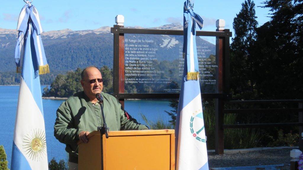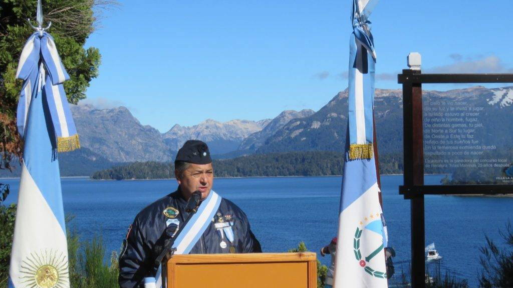 Seguidamente hizo uso de la palabra el vecino barilochense Ferrera veterano de la vecina ciudad para dar paso al vecino angosturense Gino Martínez con palabras alusivas a la memoria y los veteranos y caídos y fundamentalmente a sus familias.