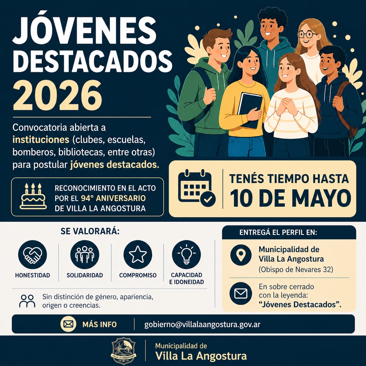 La Municipalidad de Villa la Angostura, convoca a todas las Instituciones a participar en el Certamen “Jovenes Destacados” .