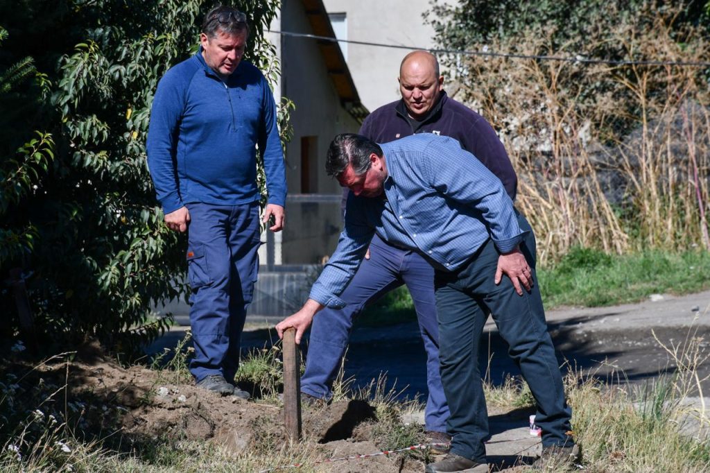 El Intendente Javier Murer, junto a la Secretaria de Hábitat y Acceso al Suelo, Franca Cendra, la Secretaria de Servicios Públicos, Paulina Goycochea, y funcionarios del EPEN, recorrieron la traza desde el punto de conexión para avanzar con el marcado de dos fundaciones destinadas a la instalación de columnas de hormigón.
