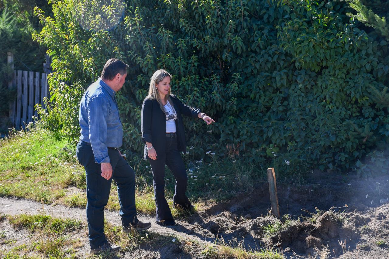 El Intendente Javier Murer, junto a la Secretaria de Hábitat y Acceso al Suelo, Franca Cendra, la Secretaria de Servicios Públicos, Paulina Goycochea, y funcionarios del EPEN, recorrieron la traza desde el punto de conexión para avanzar con el marcado de dos fundaciones destinadas a la instalación de columnas de hormigón.