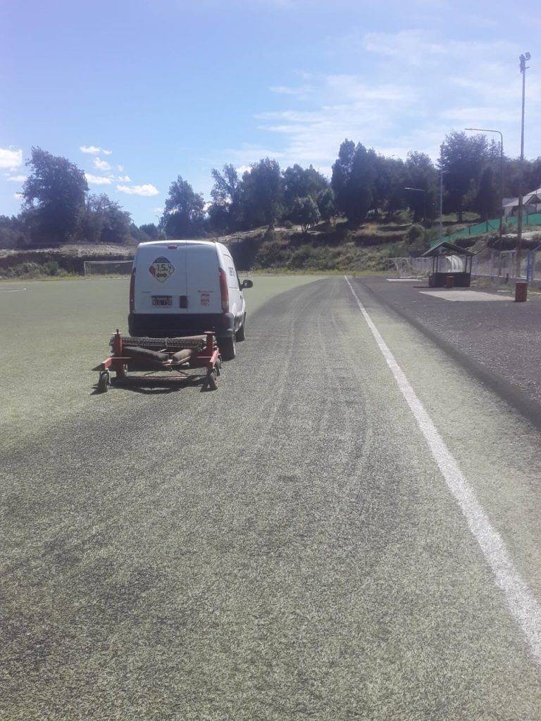 Con una cuadrilla municipal de empleados pertenecientes a la Secretaría de Deportes, se trabaja en el reacondicionamiento de la cancha de césped sintético del predio Andrés Martin y en la pintura del piso del Gimnasio de Pesas, dentro del Gimnasio Municipal Enrique Barbagelata.