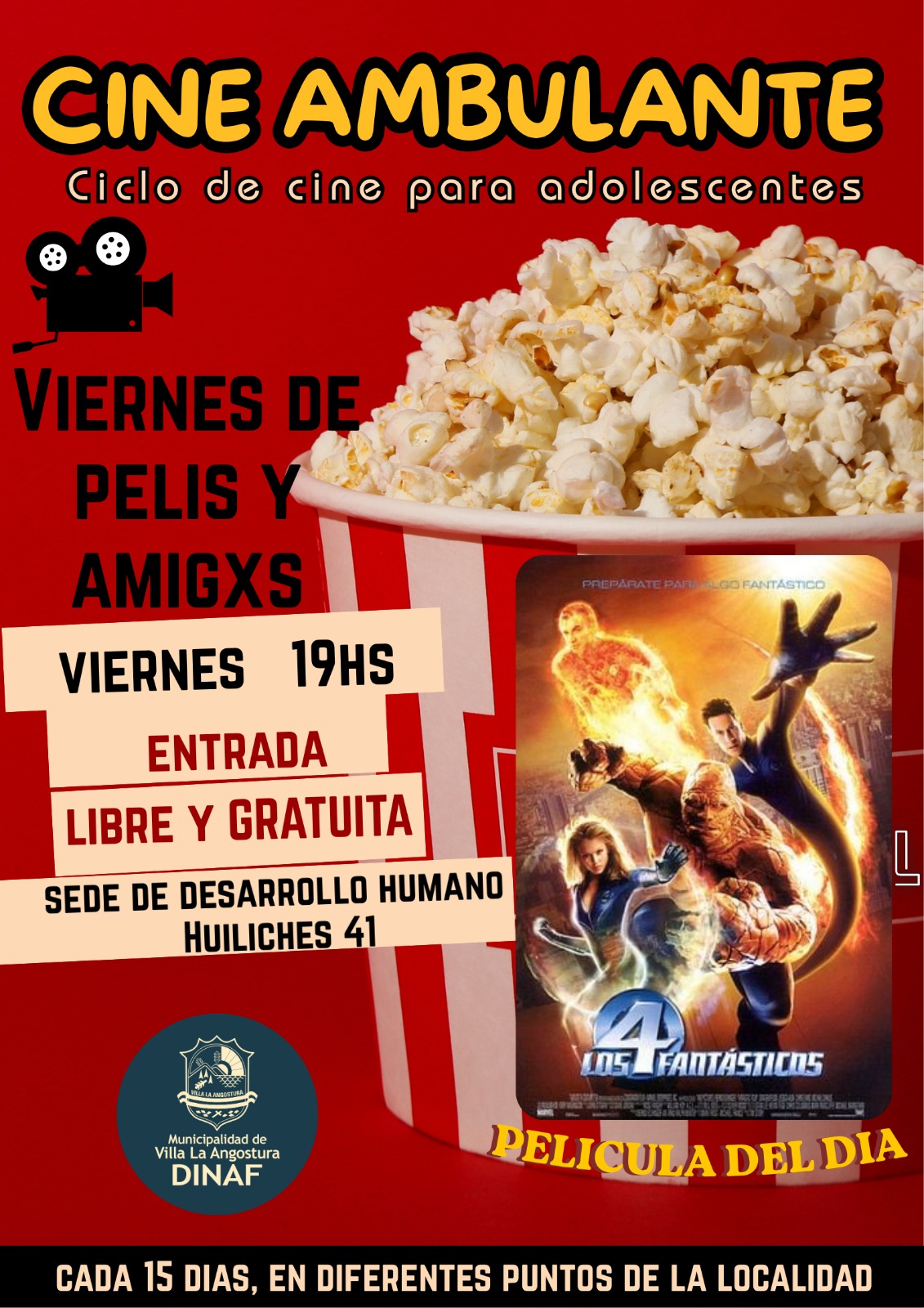 La Dirección de Niñez, Adolescencia y Familia los invita este viernes 24 de abril para disfrutar juntos de un encuentro de cine y pochoclos!