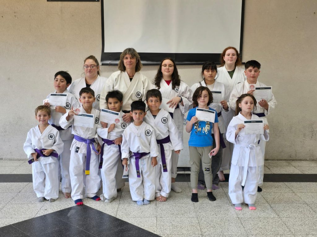 Durante la jornada, los alumnos realizaron exhibiciones y demostraciones técnicas, compartiendo lo aprendido junto a sus instructores y docentes. El encuentro permitió reconocer el esfuerzo, la constancia y los valores que promueve esta disciplina.