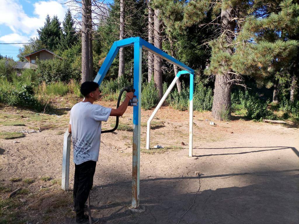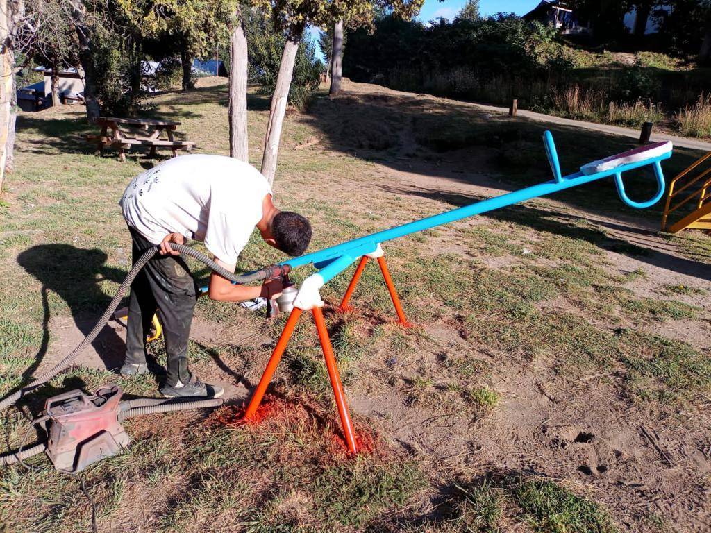 En este marco, una cuadrilla municipal procedió a pintar los juegos existentes y los arcos de fútbol correspondiente a playón de dicho predio.