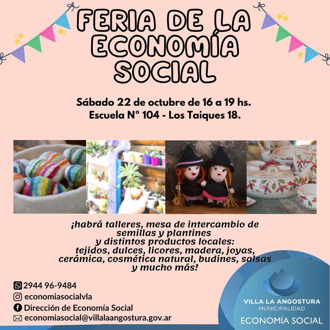 El próximo sábado 22 de octubre se realizará una nueva Feria de la Economía Social en la Escuela 104, de 16 a 19 horas.