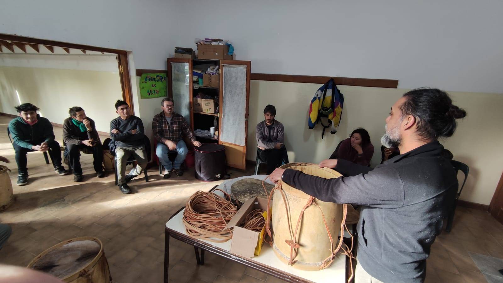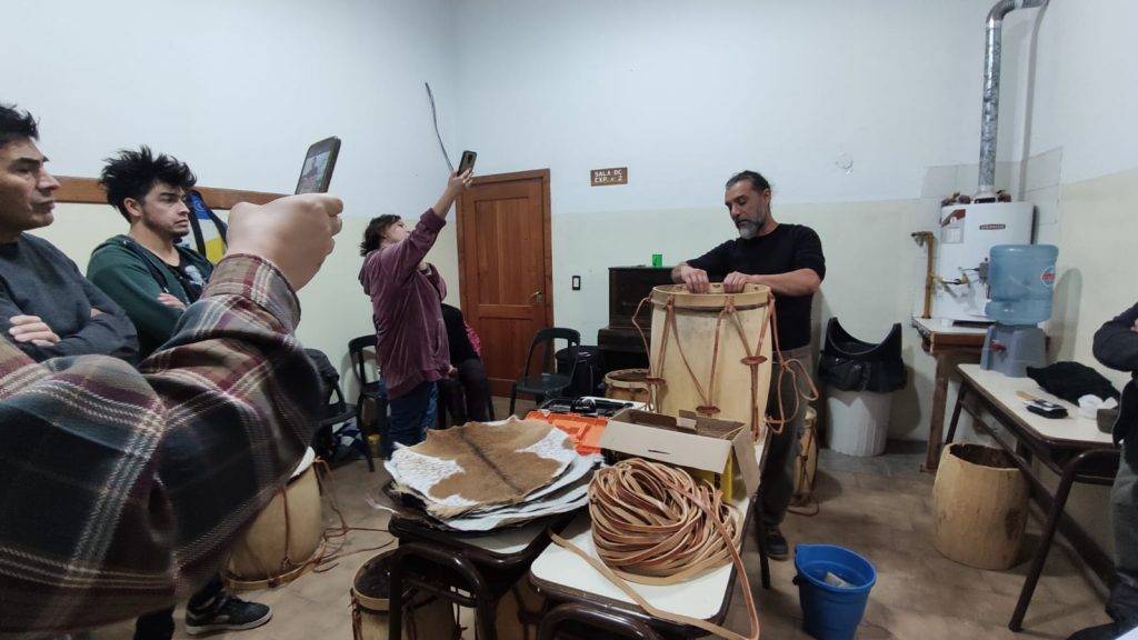 Cada participante llevó dudas y bombos para reparar. “El taller fue muy dinámico y entretenido; pusimos en práctica lo aprendido. El taller inició a las 15 hs y tuvo una duración de 4 horas”, informaron desde la Subsecretaría de Cultura.