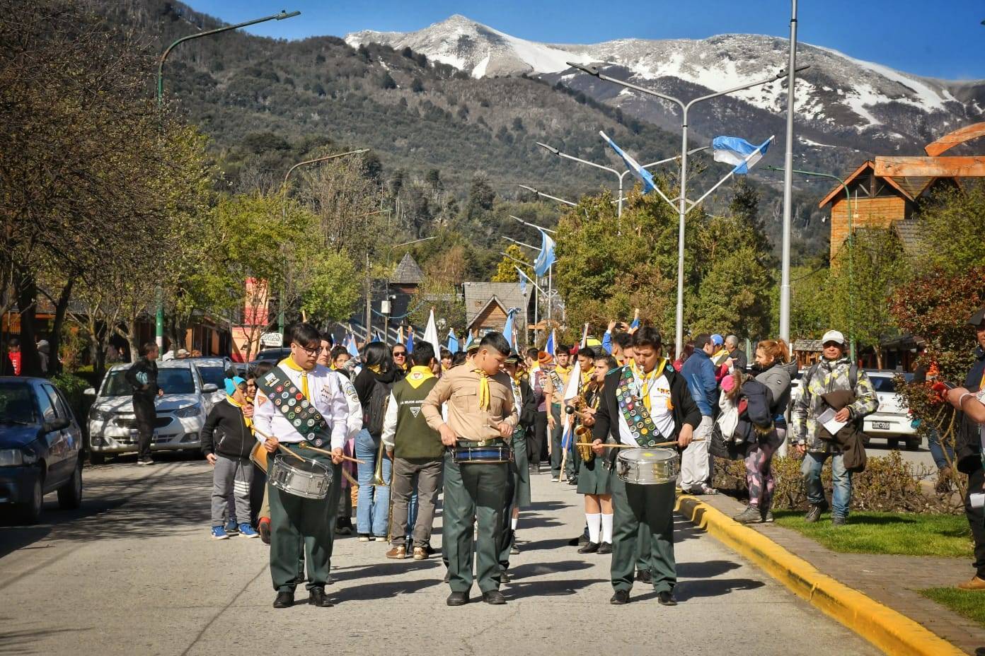 El desfile comenzó en la Av. Arrayanes y Cerro Bayo, transitando por el Blvd. Nahuel Huapi hasta la Plaza Los Pioneros. Participaron niños cuyas edades oscilan entre los 10 y 15 años que realizan actividades en al aire libre una vez por semana en sus respectivas comunidades, allí desarrollan talentos, habilidades y gusto por la naturaleza, ya que este grupo se caracteriza por disfrutar de actividades como campamentos, caminatas, exploración de bosque y cuevas.
