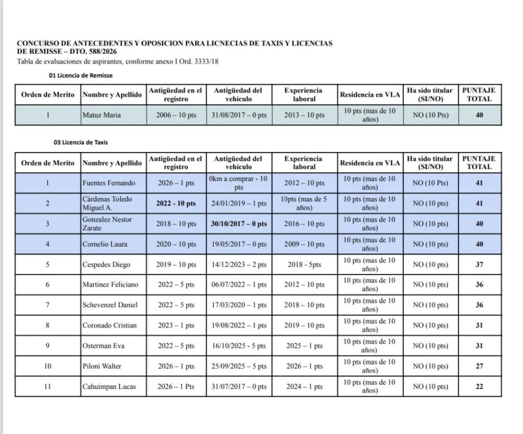Público de Antecedentes para la adjudicación de licencias de taxi y remis, en el marco del