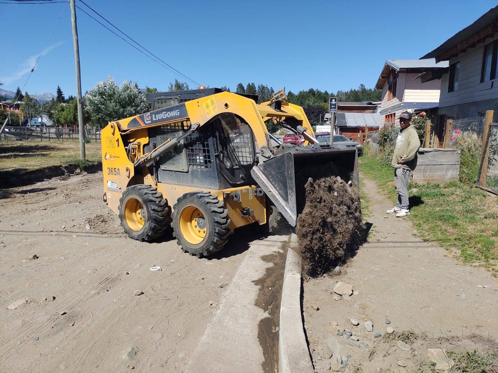 En el marco del plan de acción impulsado por el Municipio para el mejoramiento y acondicionamiento de cordones cuneta y veredas del barrio Mallín, a través de la Secretaría de Vivienda, Obra Pública e Infraestructura se retomaron los trabajos tendientes a la obra cordones cuneta de la intersección de las calles Primeros Pobladores y Guananja, del barrio Mallín.
