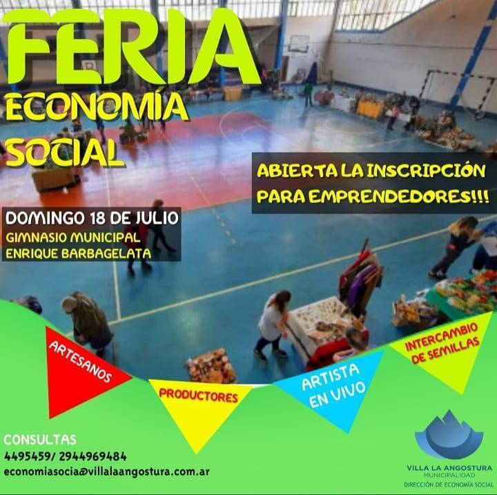 Aquellos vecinos que realicen de manera artesanal y genuina sus productos y quieran ofrecerlos en el marco de esta feria, deberán inscribirse en la oficina de economía social cita en Millaqueo 124, o al 4495459; via mail a economiasocial@villalaangostura.gov.ar. de lunes a viernes de 8 a 14hs.No se aceptará reventa de ningún producto, ni rebasado o reetiquetado.  Los productos alimenticios deberán contar con la aprobación de Bromatología Municipal. En esta oportunidad habrá música en vivo y una mesa de intercambio de semillas.