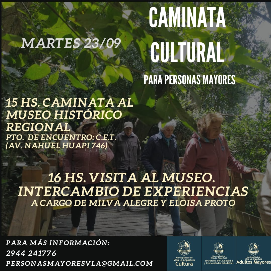 El Área de Adultos/as Mayores invita a todas las personas mayores de 60 años a participar de una caminata cultural que se realizará el próximo martes 23 de septiembre, de 15 a 18 horas.