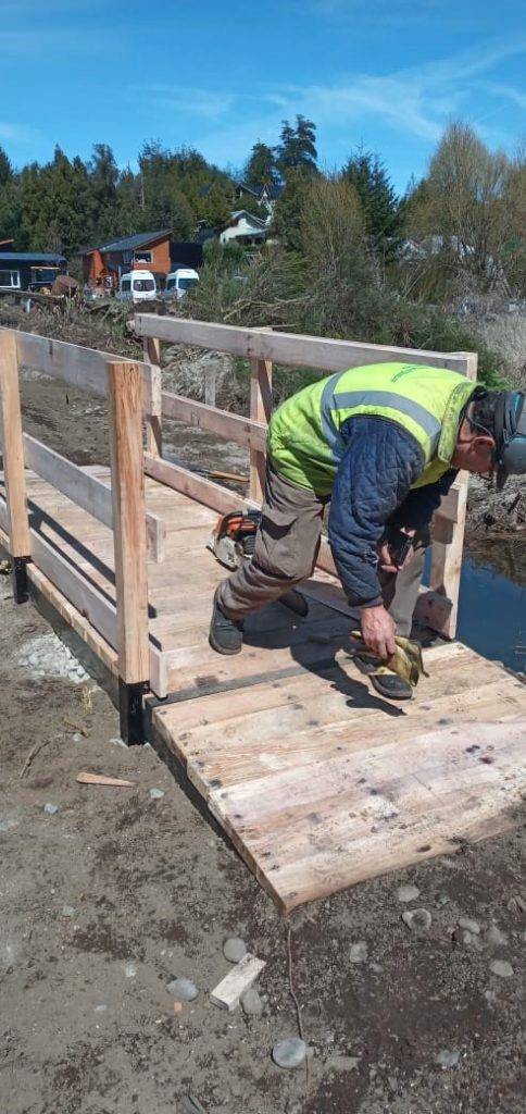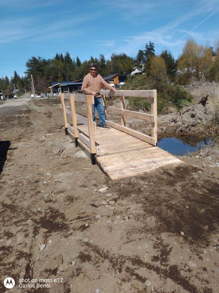 Personal del área construyó un puente peatonal en el barrio Tres Cerros, en la calle Barbagelata. Para esto prepararon el sector a implementar y el material a utilizar.