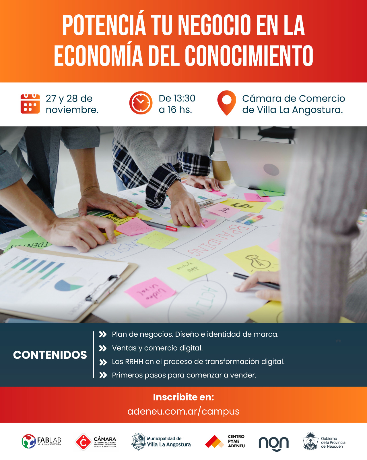 El Centro PyME-ADENEU, Municipalidad de Villa La Angostura y Fablab te invitan a participar del curso gratuito: “ Ventas – Potencia tu negocio en la Economía del Conocimiento ”