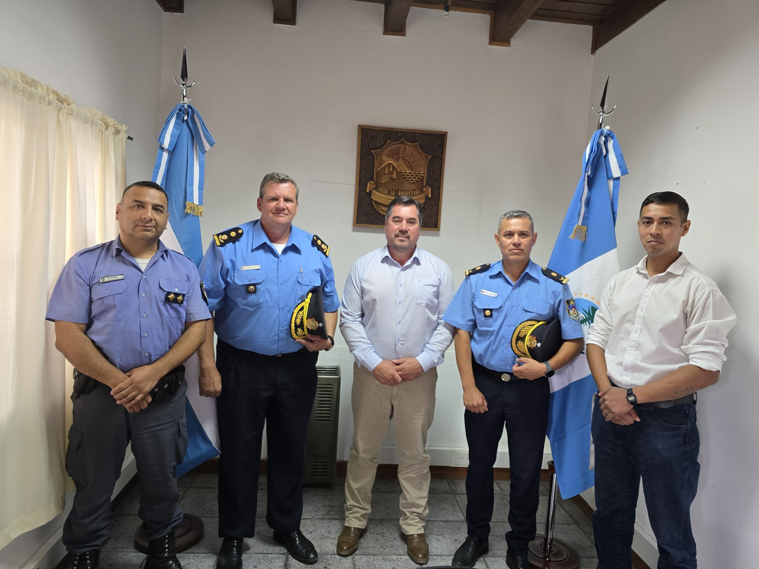 Durante el encuentro se realizó la presentación formal del nuevo Comisario Inspector Miguel Poblete, quien asumió como coordinador operativo de Villa La Angostura y Villa Traful, así como también del Comisario Luis Pérez, segundo jefe de la Comisaría N° 28. Asimismo, participó el Comisario Mayor Guillermo Alfaro, junto al Subsecretario de Seguridad y Ordenamiento Vial, Milton Maraboli.