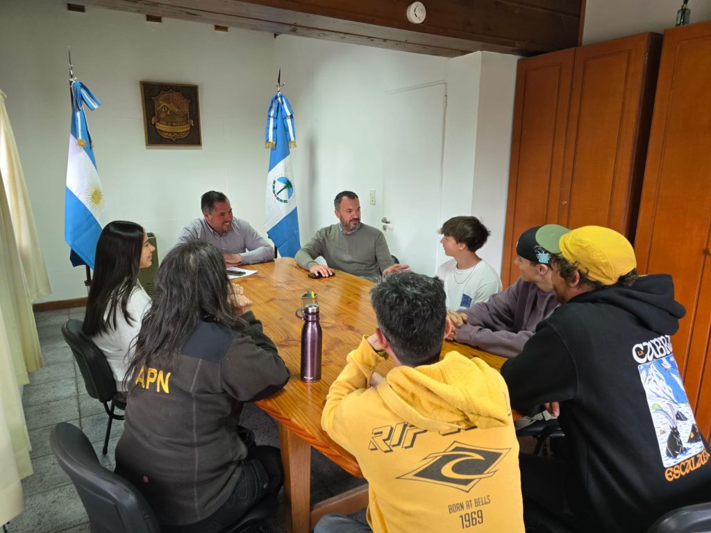 El Intendente Javier Murer, junto al Secretario de Gobierno, Lic. Juan Pablo Naretti, recibió en su despacho a Álvaro Llul, Constanza Solveira, Benjamin Perri, representantes del Club Andino Villa La Angostura (CAVLA) para dialogar sobre la participación internacional en que representarán a Villa la Angostura y a la Argentina en competencias de freeride de nivel mundial durante el 2026.