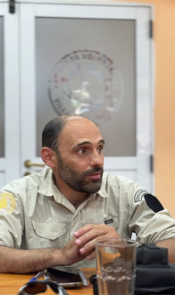 En el día de hoy se llevó a cabo una reunión de la que participaron, Mauro Piñeiro, Brisas Railaf, pertenecientes a la Administración de Parques Nacionales – APN, el Comisario Marcos Oviedo de la Comisaria 28°; Gabriela Navarro, Servicio Provincial de Manejo de Fuego, Juan Pablo Naretti, Secretario de Gobierno de la Municipalidad de Villa La Angostura, Milton Maraboli, Subsecretario de Seguridad y Ordenamiento Vial, el Jefe del Cuerpo Activo de Bomberos Voluntarios, Oficial Ayudante Carlos Gutiérrez, el Segundo Jefe Oficial Principal William Trujillo, y la Directora de Protección Civil, Aldana Rodríguez, quienes abordaron de manera conjunta los distintos ejes de trabajo y coordinación interinstitucional.