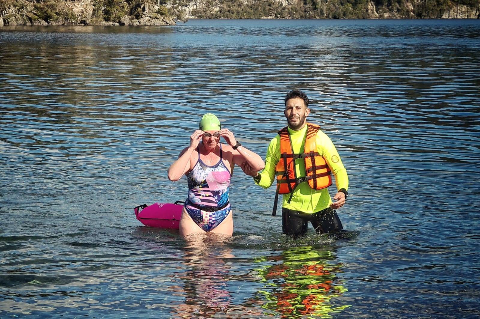 Como parte del denominado “Cruce de los siete Lagos”, la nadadora mundialista Daiana Ferrer, realizó la etapa local nadando en las frías aguas del Nahuel Huapi sin protección como anticipó el día de ayer en su charla abierta a todo público en el Centro de Convenciones Arrayanes.