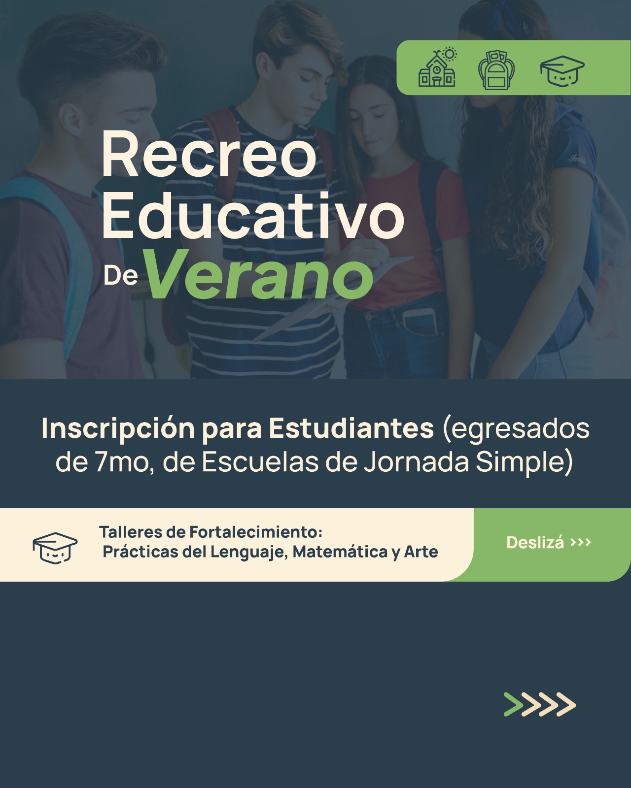 Es una propuesta de fortalecimiento que contará con talleres en las áreas de Prácticas del Lenguaje, Matemática y Arte. El objetivo es brindar acompañamiento a las y los estudiantes para afianzar conocimientos vinculados a cada espacio y consolidar saberes de cara al inicio de los estudios de Nivel Secundario.