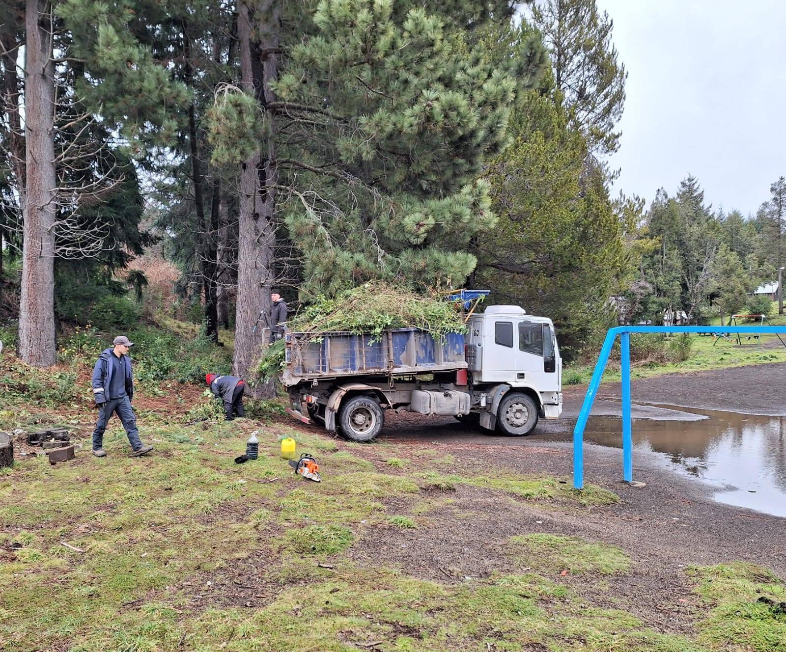 Asimismo, la cuadrilla de Atención al Vecino comenzó con la poda y raleo en la plaza principal del barrio. La poda y raleo, consiste en reducir gradualmente el número de arbustos para concentrar el crecimiento en las especies autóctonas como el Maqui (componedor del suelo) así como limpieza y control de las plantas exóticas existentes como las Retamas y la Mura.