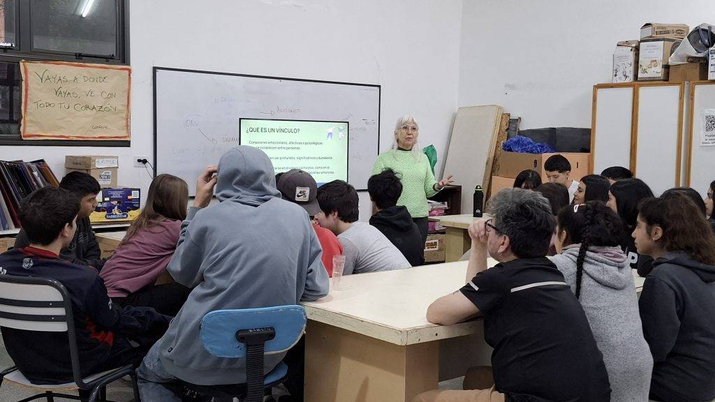 La actividad contó con la participación de destacados profesionales, incluyendo a Tomas Diclemente, Director Provincial de Diagnóstico y Prevención; Facundo D’alu, psicólogo; y Eva Rosas, Psicóloga Social. Durante las charlas, se abordaron temas clave relacionados con la violencia, los vínculos saludables y la comunicación efectiva, buscando fortalecer la prevención y promover un ambiente escolar positivo.