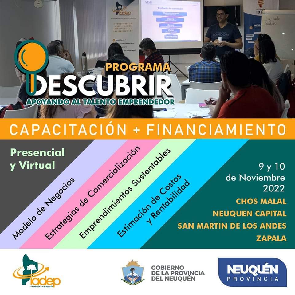Los interesados deben inscribirse hasta el 4 de noviembre a través del siguiente link  https://www.iadep.gob.ar/iadep/descubrir-2022-capacitacion-financiamiento/