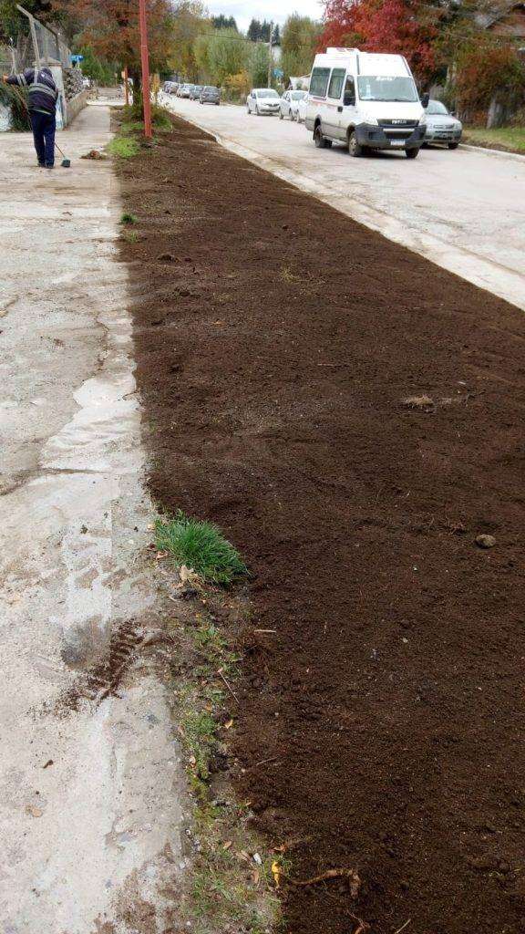 A su vez, en el día de hoy se comenzó con los trabajos de nivelación y de suelo en la calle Las Retamas, para luego colocar el pavimento reticulado.