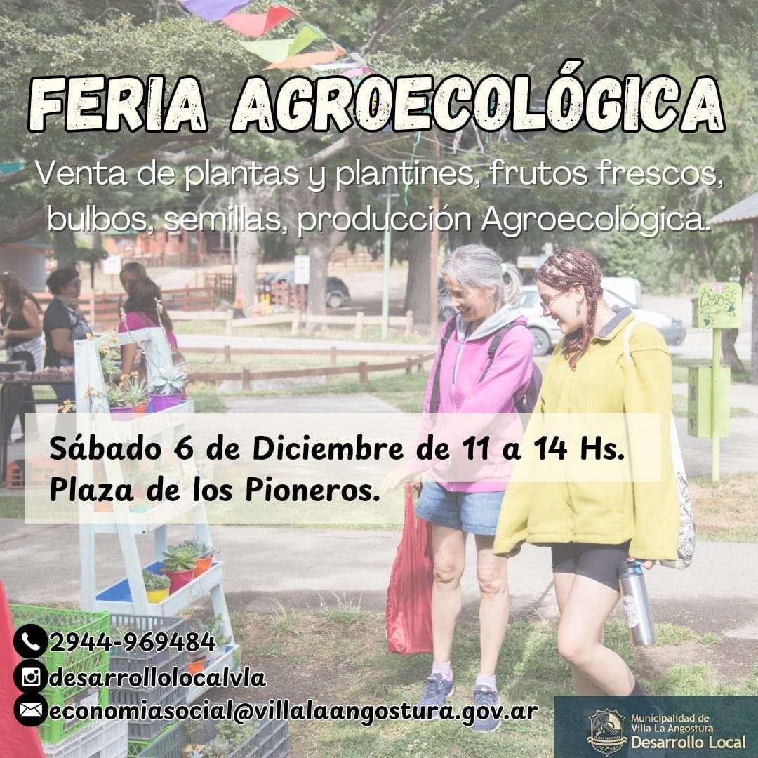 La Municipalidad de Villa La Angostura, a través de la Dirección de Desarrollo Local, invita a la comunidad a participar de una nueva edición de la Feria Agroecológica, que se realizará este sábado 6 de diciembre, de 11 a 14 horas, en la Plaza de los Pioneros.