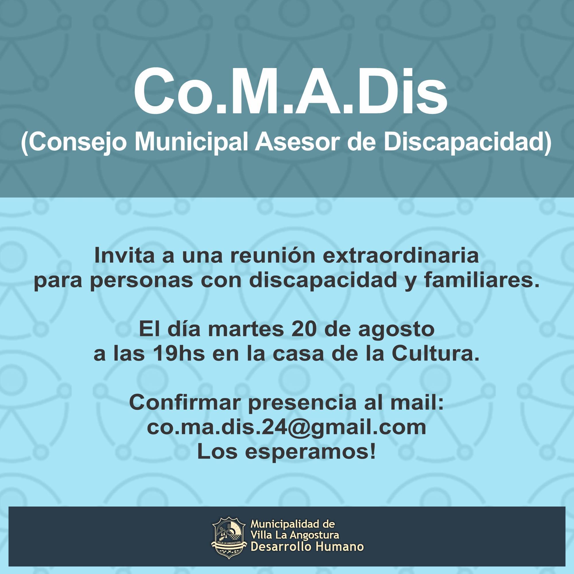 La primera reunión, que se llevará a cabo el martes 20 de agosto a las 19hs en la Casa de la Cultura y contará con la participación de miembros del Co.MA.Dis, la Doctora Graciela Lobos, Secretaria de Desarrollo Humano, y Marina Roma, Coordinadora de Integración e inclusión social en la localidad. Este encuentro será una oportunidad valiosa para que las familias puedan expresar sus inquietudes, compartir sus situaciones y contribuir a la construcción de un entorno más inclusivo y solidario.