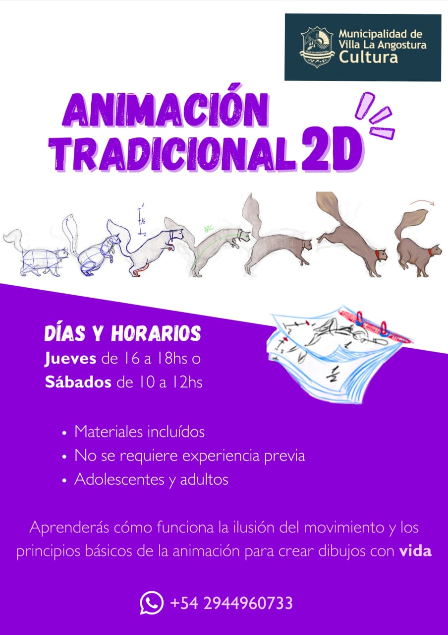 La Municipalidad de Villa La Angostura, a través del área de Cultura, invita a la comunidad a participar del taller de Animación Tradicional 2D, una propuesta creativa destinada a adolescentes y adultos.