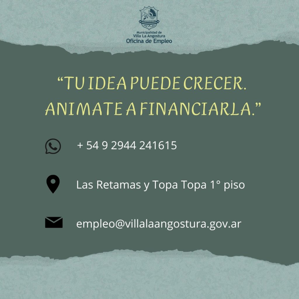 Desde el Gobierno de la Provincia del Neuquén, se continúan impulsando políticas públicas destinadas a fortalecer el trabajo, el autoempleo y el desarrollo productivo en todo el territorio provincial.En este marco, la Municipalidad de Villa La Angostura, a través de su Oficina de Empleo, lleva adelante la ejecución de distintas líneas de financiamiento destinadas a personas mayores de 18 años, que incluyen los programas de: