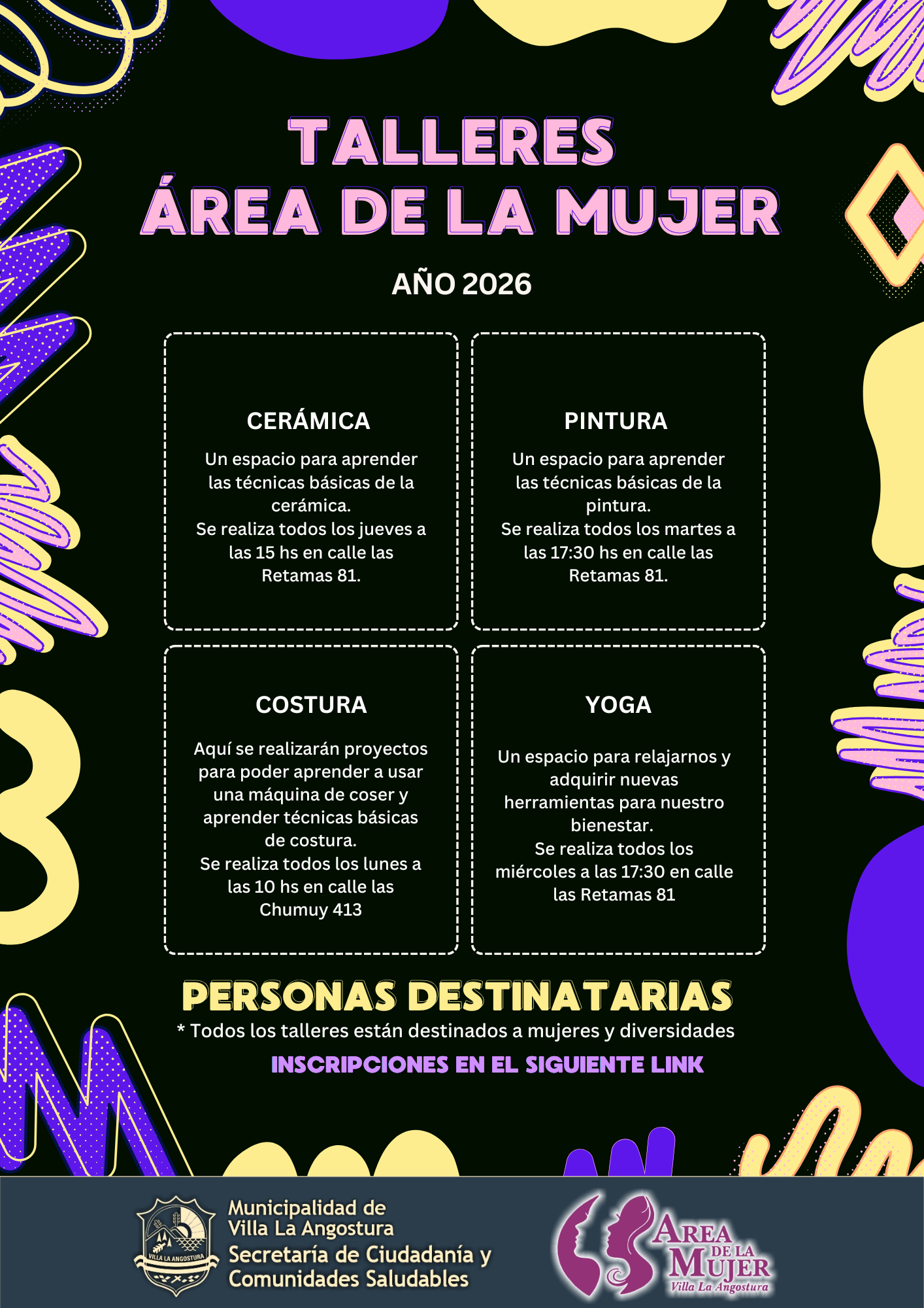 El Área de la Mujer informa que se encuentra abierta la preinscripción a los talleres 2026.