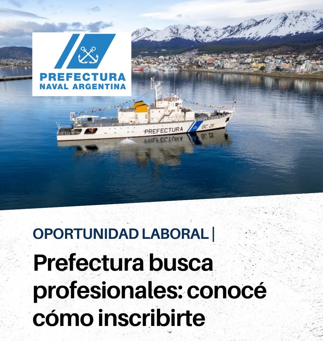 La Prefectura Naval Argentina inició la inscripción para profesionales que deseen ingresar, mediante