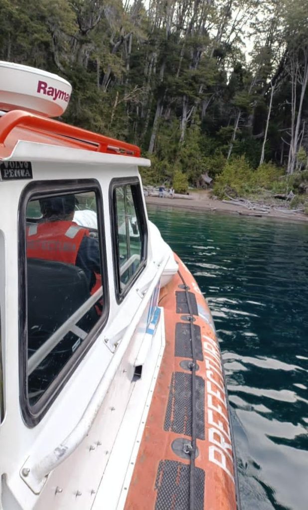 Efectivos de la Prefectura Naval Argentina asistieron a dos hombres que no podían regresar a la costa debido al aumento repentino del viento y el oleaje en las aguas del lago Nahuel Huapi, en cercanías de la Bahía San Patricio, Península de Quetrihue.