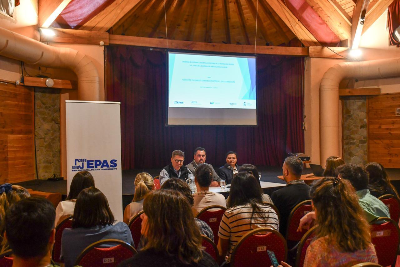El presidente del EPAS, Gustavo Hernández y el intendente de Villa La Angostura, Javier Murer, encabezaron una reunión que marca el inicio de la planta de pretratamiento provenientes de efluentes de camiones atmosféricos de la localidad. En el encuentro donde participaron técnicos de la Unidad Ejecutora Unidad Provincial de Enlace y Ejecución de Proyectos con Financiamiento Externo (UPEFE), del Ente Provincial de Agua y Saneamiento (EPAS) y del municipio de Villa La Angostura, se expusieron los alcances de la obra, una infraestructura estratégica para el saneamiento ambiental de la localidad.