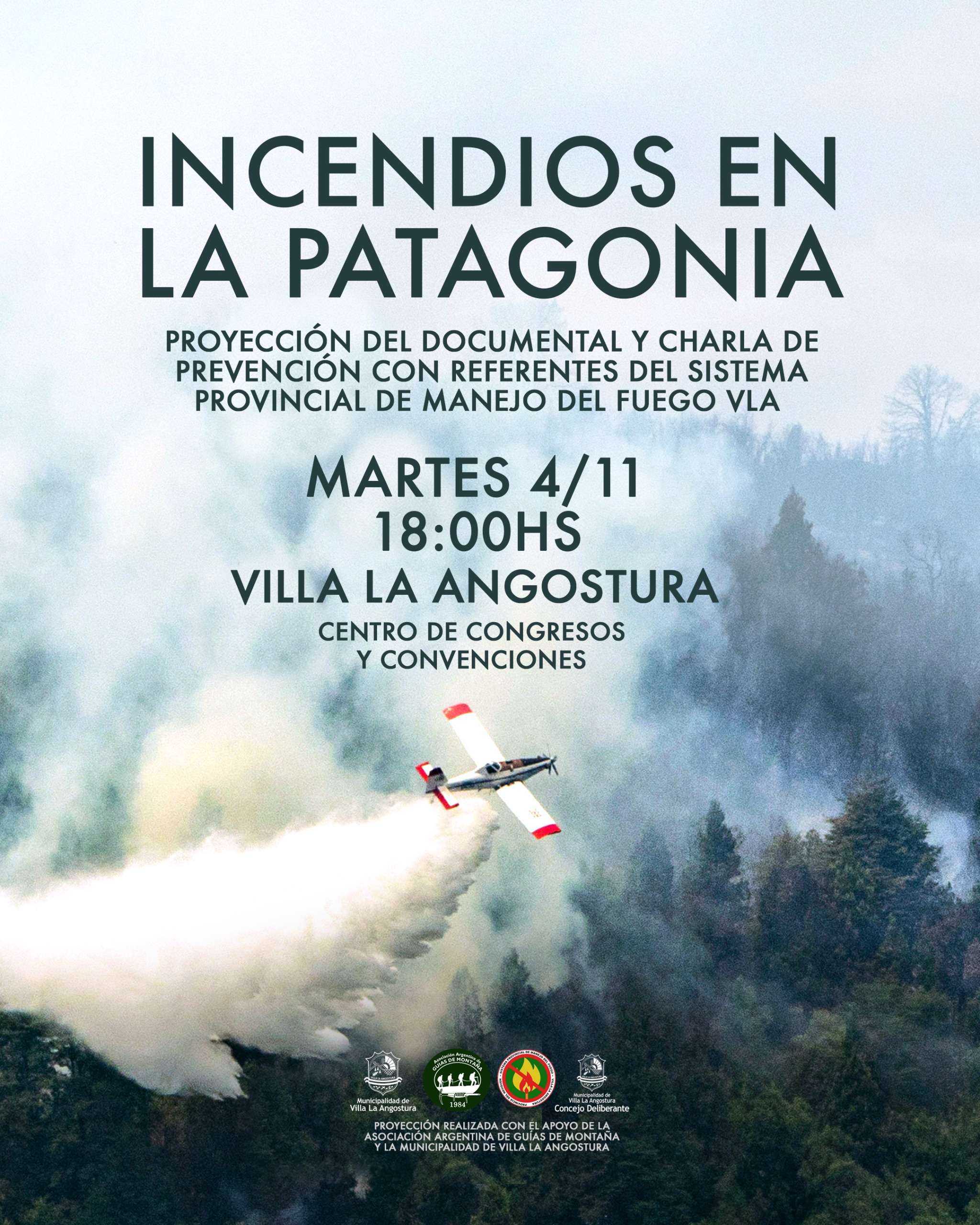 La Municipalidad de Villa La Angostura invita a la comunidad a participar de la proyección del documental “Incendios en la Patagonia”, que se realizará el Martes 4 de noviembre a las 18:00 horas en el Centro de Congresos y Convenciones Arrayanes.