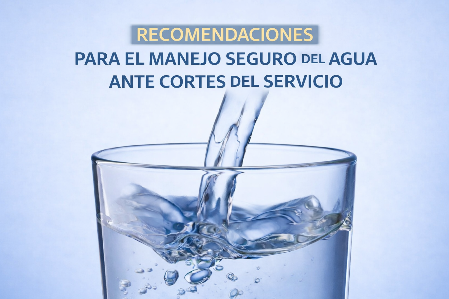 • Una vez restablecido el servicio de agua, se recomienda no consumir agua de red durante las primeras 2 o 3 horas y continuar utilizando agua envasada. Esto permite la correcta estabilización del cloro residual para que el agua sea segura.