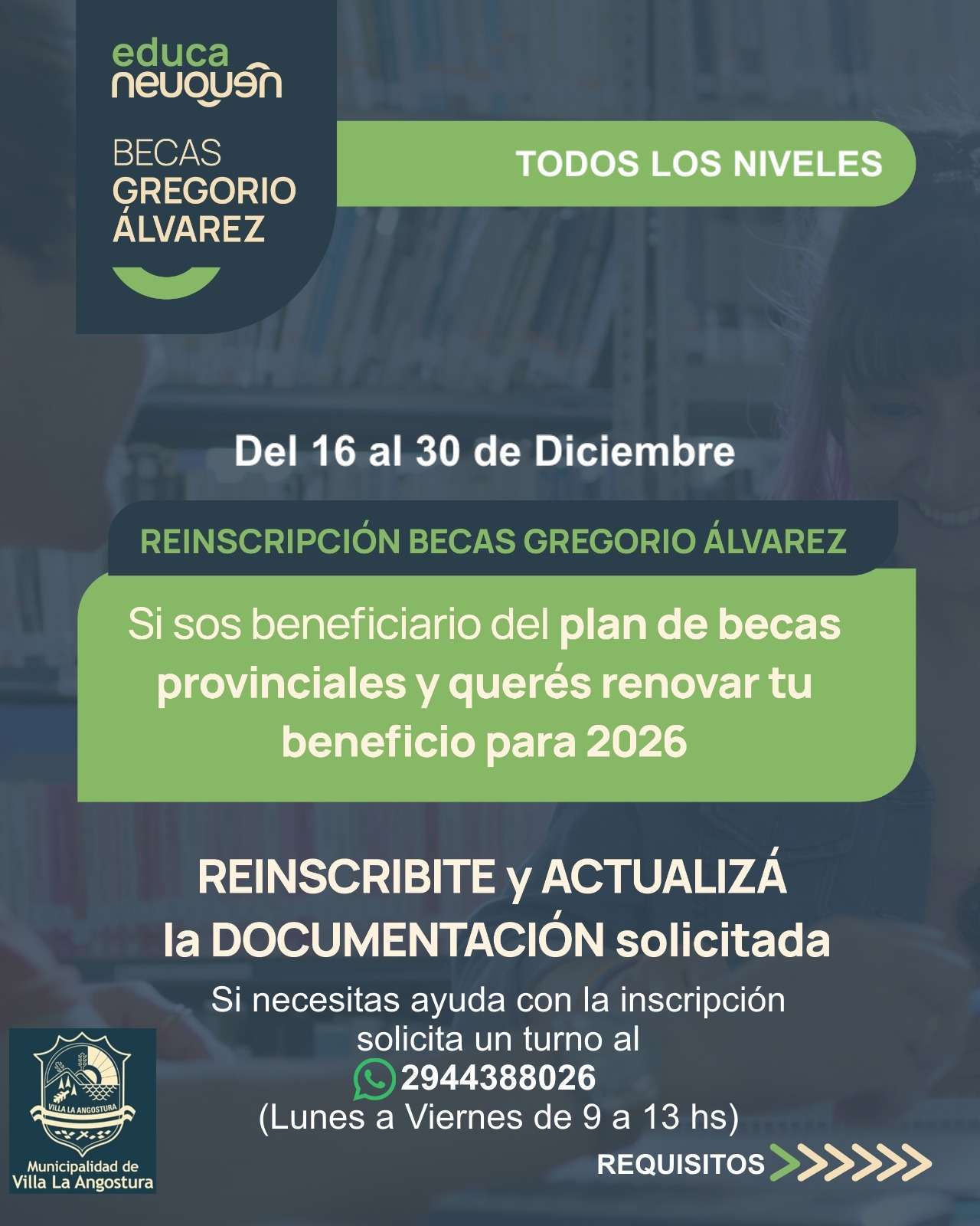 Abren las inscripciones a las Becas Gregorio Álvarez para nuevos aspirantes