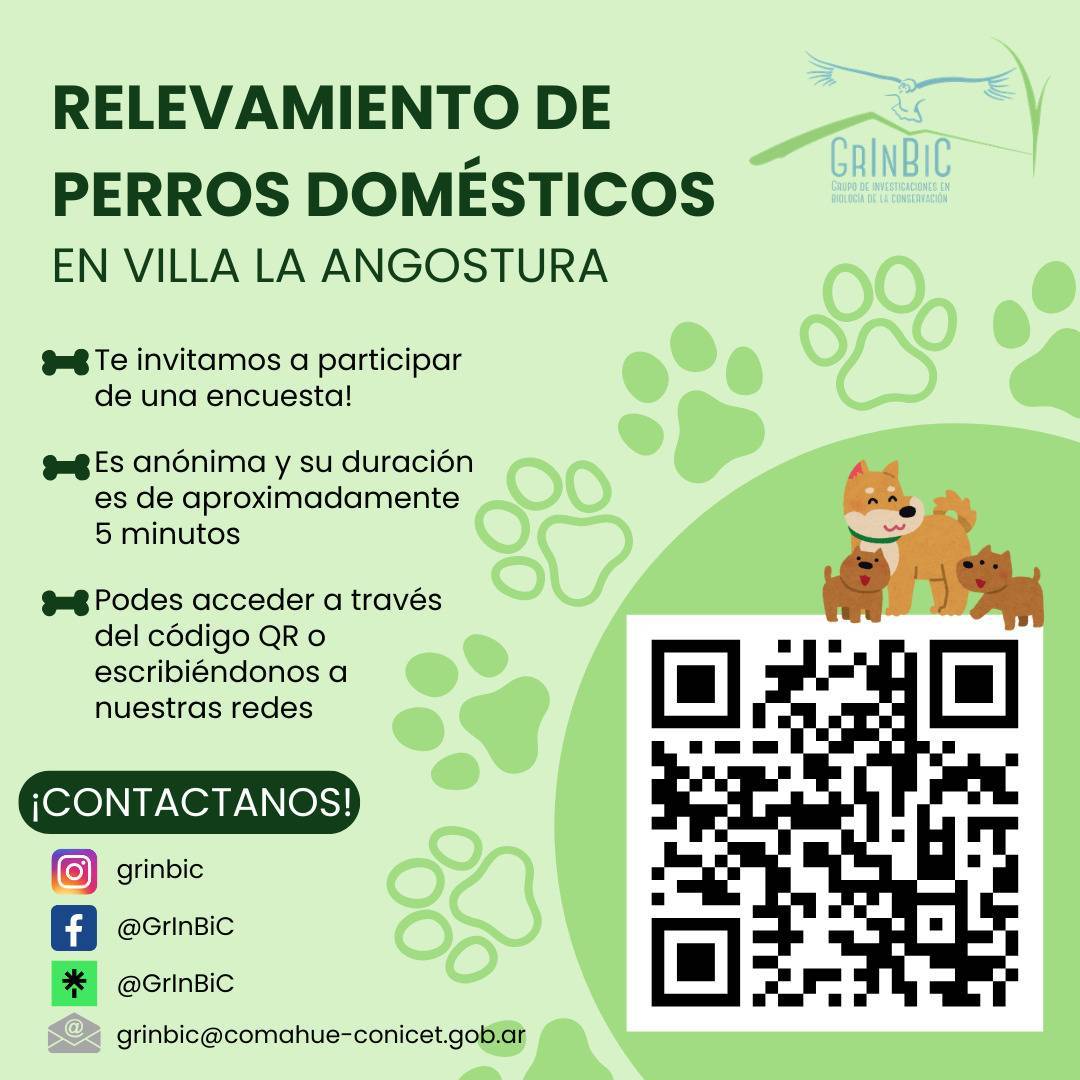 En esta ocasión, se invita a la comunidad de Villa La Angostura a participar en una encuesta online cuyo propósito es caracterizar la población de perros en la zona y analizar los cuidados que reciben. Esta iniciativa se lleva a cabo en colaboración con la Municipalidad de Villa La Angostura, cuyo objetivo general es establecer una colaboración formal para la investigación y gestión de indicadores sobre perros domésticos.