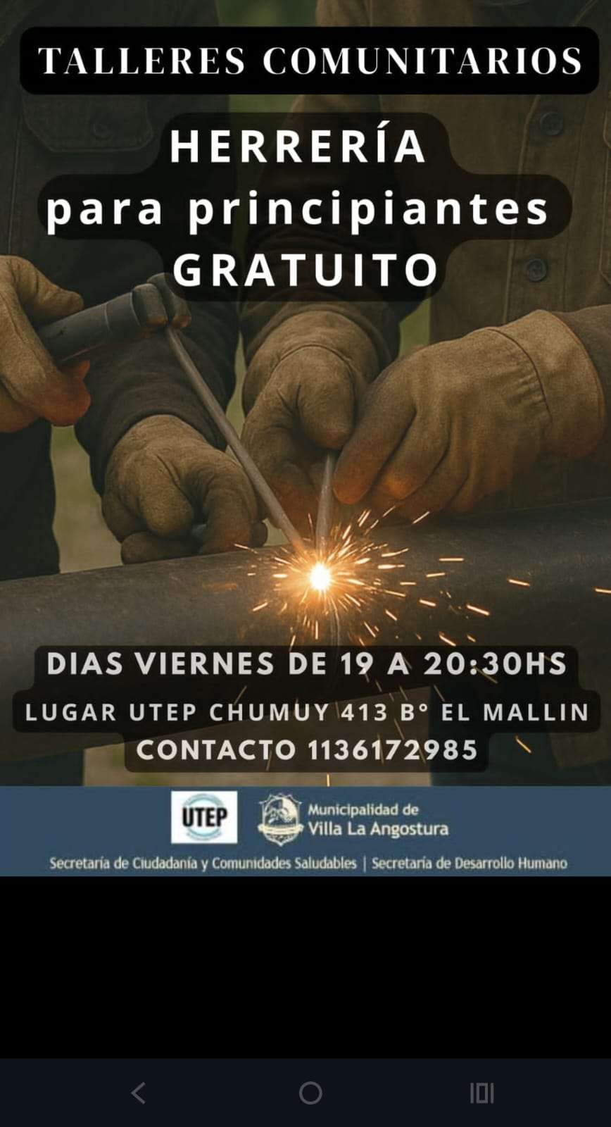 La Municipalidad de Villa La Angostura informa que se encuentra en marcha el Taller Comunitario de Herrería para principiantes, una propuesta gratuita destinada a vecinos y vecinas de la localidad.