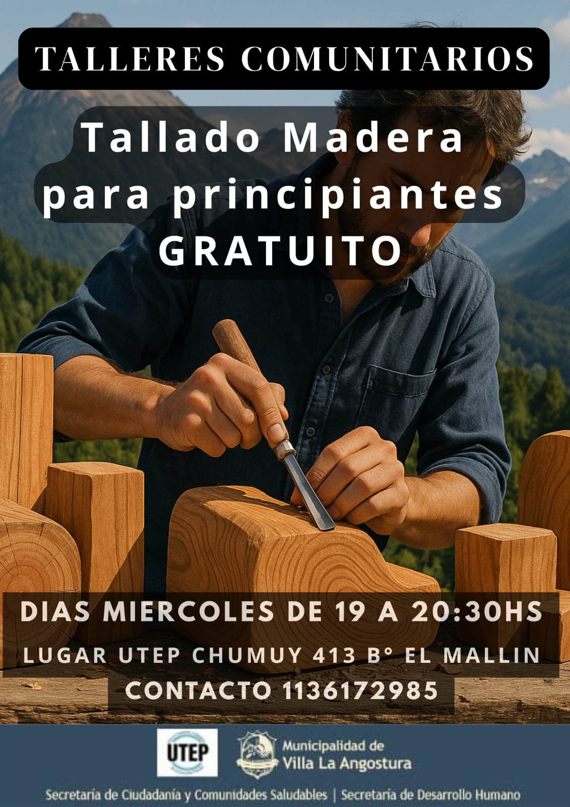 La Municipalidad de Villa La Angostura informa que se encuentra en marcha el Taller Comunitario de Tallado sobre madera para principiantes, una propuesta gratuita destinada a vecinos y vecinas de la localidad.