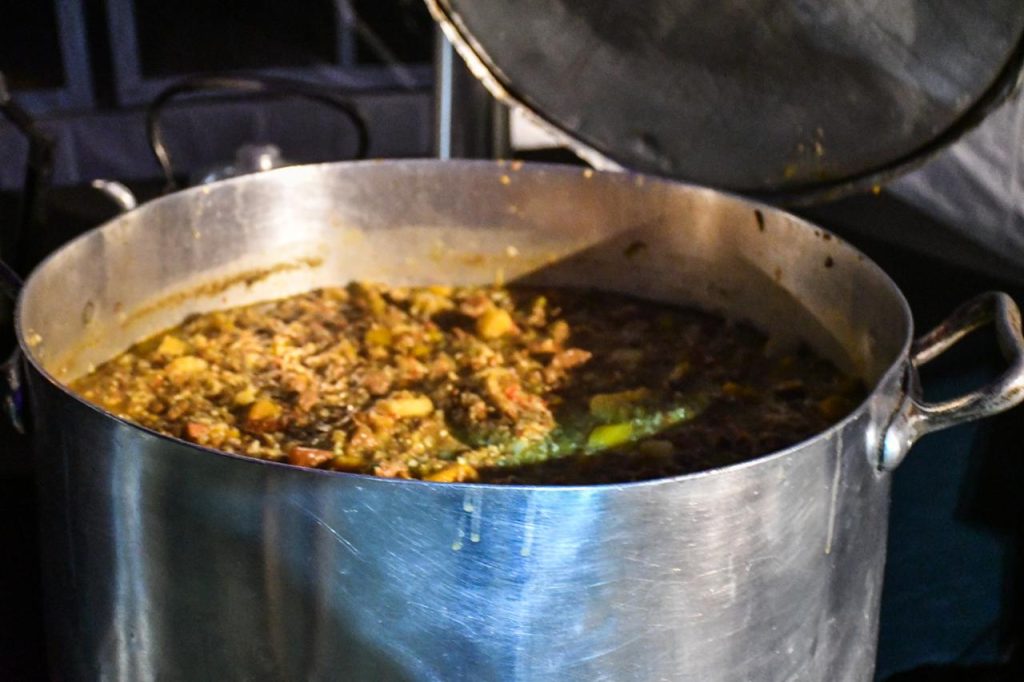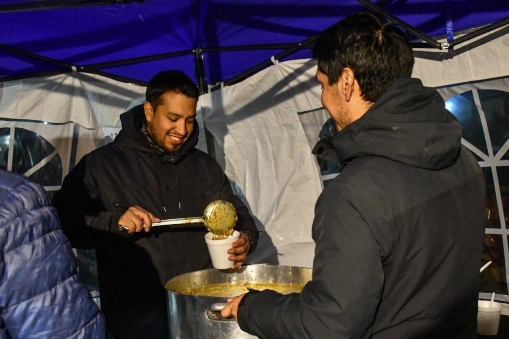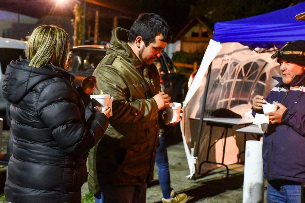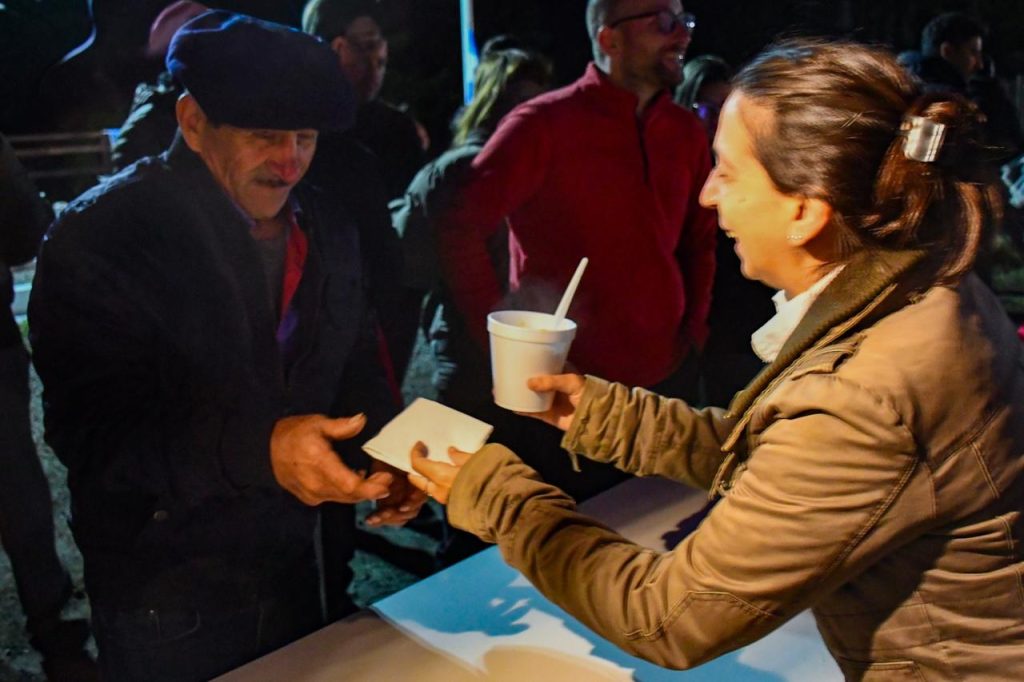 Durante la vigilia, y en el marco de una fría noche, se ofreció guiso de lentejas para acompañar a los asistentes, generando un clima de encuentro y comunidad.